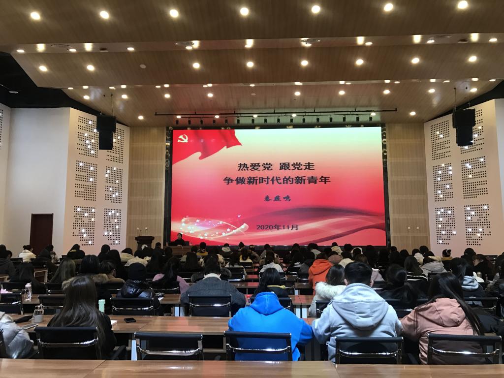12月2日下午,纪委书记秦燕鸣以“热爱党、跟党走,争做新时代的新青年”为题,在图书馆报告厅为外国语学院全体学生党员、党员发展对象、入党积极分子和2020级学生讲授了一堂精彩的党课。