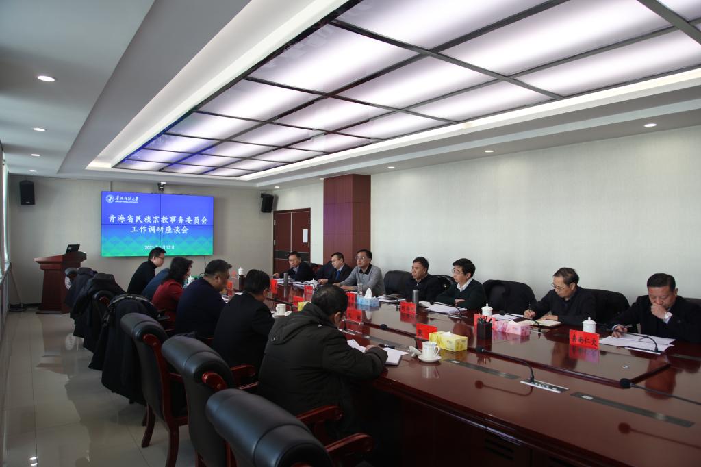 1月13日,青海省民族宗教事务委员会副主任哈斯巴图一行莅临永利官网城北校区调研设立筑牢中华民族共同体意识研究机构工作,副校长赵海兴,及学校机关职能部门、学院负责人和研究机构的专家代表参加了座谈会。座谈会由校党委副书记、常务副校长马德明主持。