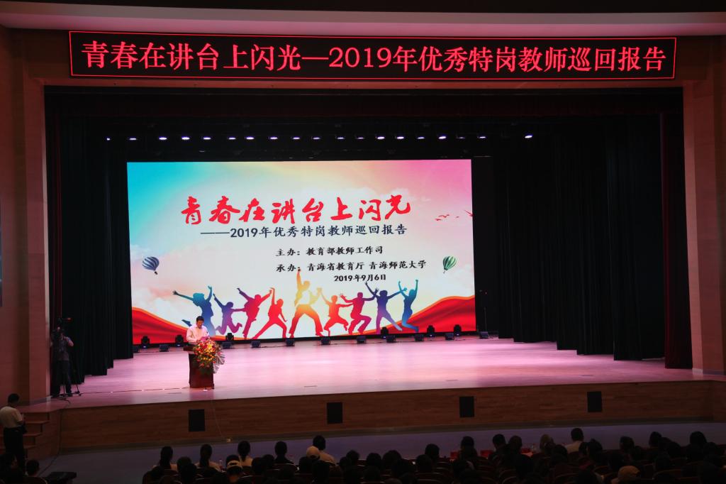 9月6日下午,教育部“青春在讲台上闪光——优秀特岗教师报告团”在永利官网大学生活动中心作巡回报告。教育部教师工作司二级巡视员赵建军、省教育厅副厅长董林、省教育厅教师工作处副处长张勇、五位优秀特岗教师报告团、永利官网副校长冶成福出席报告会。澳门永利唯一官网304、青海民族大学870余名师生代表聆听了报告会。报告会由冶成福主持。