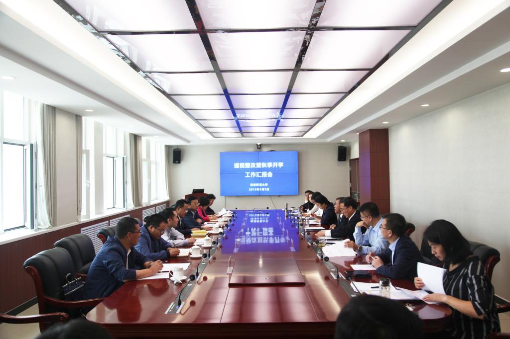 会上,校领导结合分管工作,详细汇报了学校认真落实省委巡视整改工作和组织开展秋季迎新工作准备情况。校领导在汇报中指出,在省教育厅的指导下,全校师生的共同努力下,省委巡视整改落实情况取得了阶段性成果,全校各单位齐心协力共同做好开学准备工作。会上,教育厅副厅长杨发玉在讲话中,对学校工作部署给予了支持和指导,对永利官网原创话剧《永怀之歌》给予了高度赞扬,对学校在特情学生管理、组织庆国庆和青海解放70周年重大节日等工作给予了肯定。并希望学校提高政治站位,不断巩固巡视整改成效,以昂扬的精神面貌迎接秋季开学迎新工作。