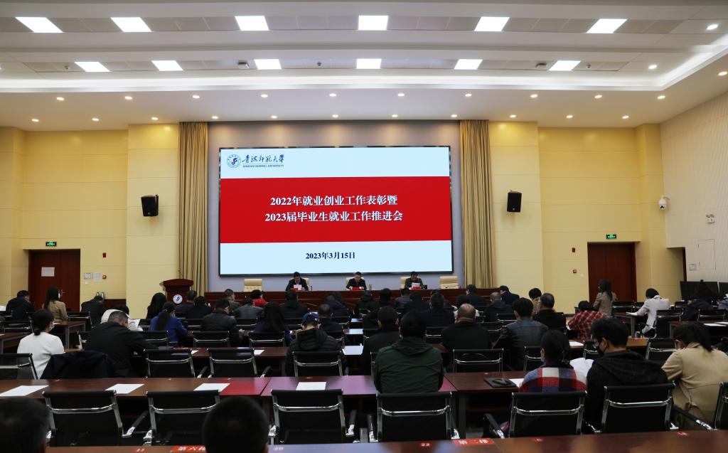 会上,表彰了3个就业工作先进单位、3个创业工作先进单位、10名就业工作先进个人、7名创业工作先进个人和10名创新创业优秀指导教师。数学与统计学院党总支书记鲍洪武、计算机学院辅导员赵丽雯分别代表2022年就业先进单位和就业先进个人做了经验交流发言。