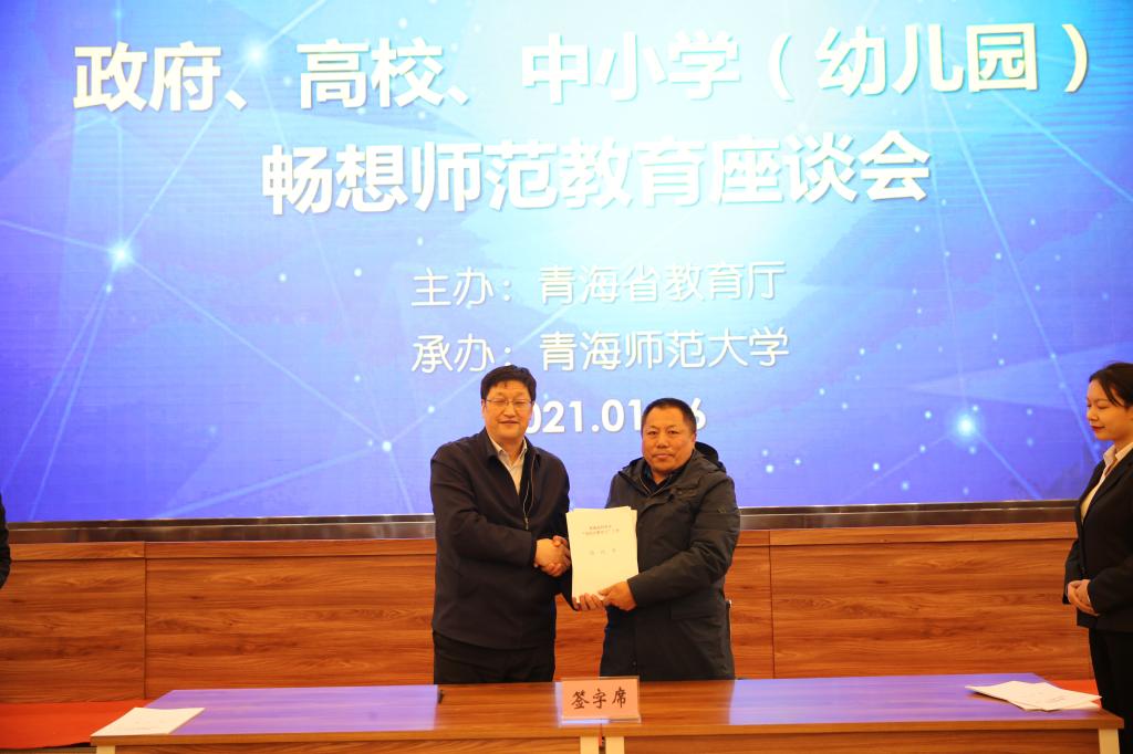 1月6日,由永利官网承办的政府、高校、中小学畅想师范教育座谈会在图书馆一楼学术报告厅举行。省教育厅教师工作处副处长杨燕,校党委副书记、校长史培军,校党委副书记、常委副校长马德明,副校长冶成福,北京师范大学国家级教学名师王静爱教授出席会议。我省35个县(市、区)教育局主要负责人,西宁市部分学校优秀指导老师,永利官网相关职能处室,校顶岗支教实习领导小组成员、2021年全体驻县教师、各学院学科教学论负责人等150余人参加了会议。会议由马德明主持。