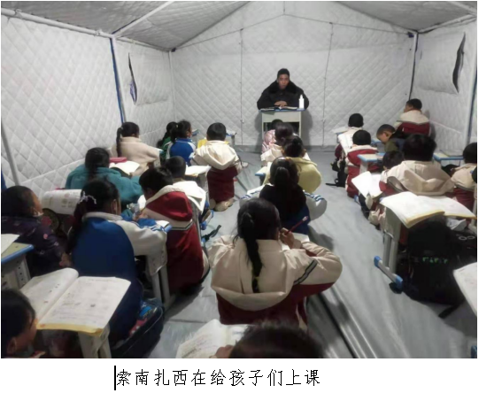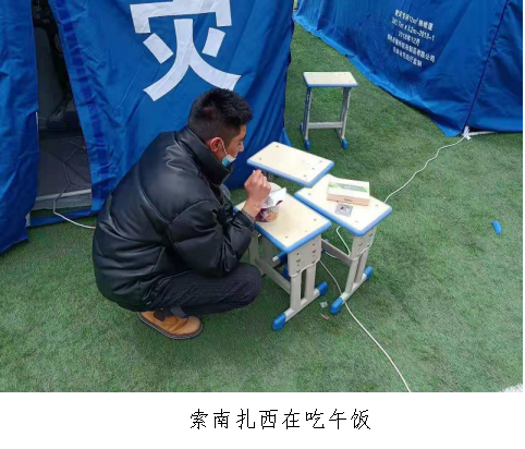 “6月初这几天余震特别多,情绪也不是很好,也会很担心很害怕。但是看着孩子们也因为地震害怕的状态,我必须坚强,因为我是老师啊”,同时索南扎西也提到,“这次地震真切的感受到了党和国家的关怀,真心感恩所有帮助我们的人。接下来的每一天,我都会继续努力的”。