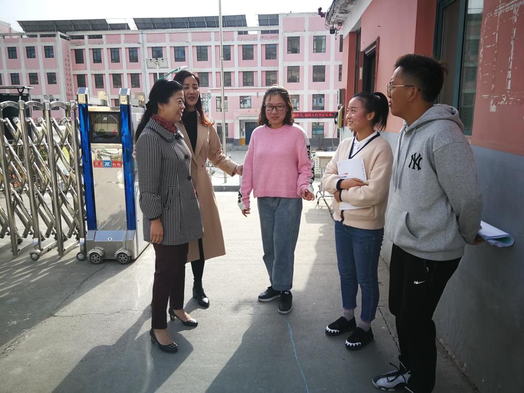 校纪委副书记齐志强,外国语学院党总支书记、院长马金芳一同看望慰问了顶岗支教师生。