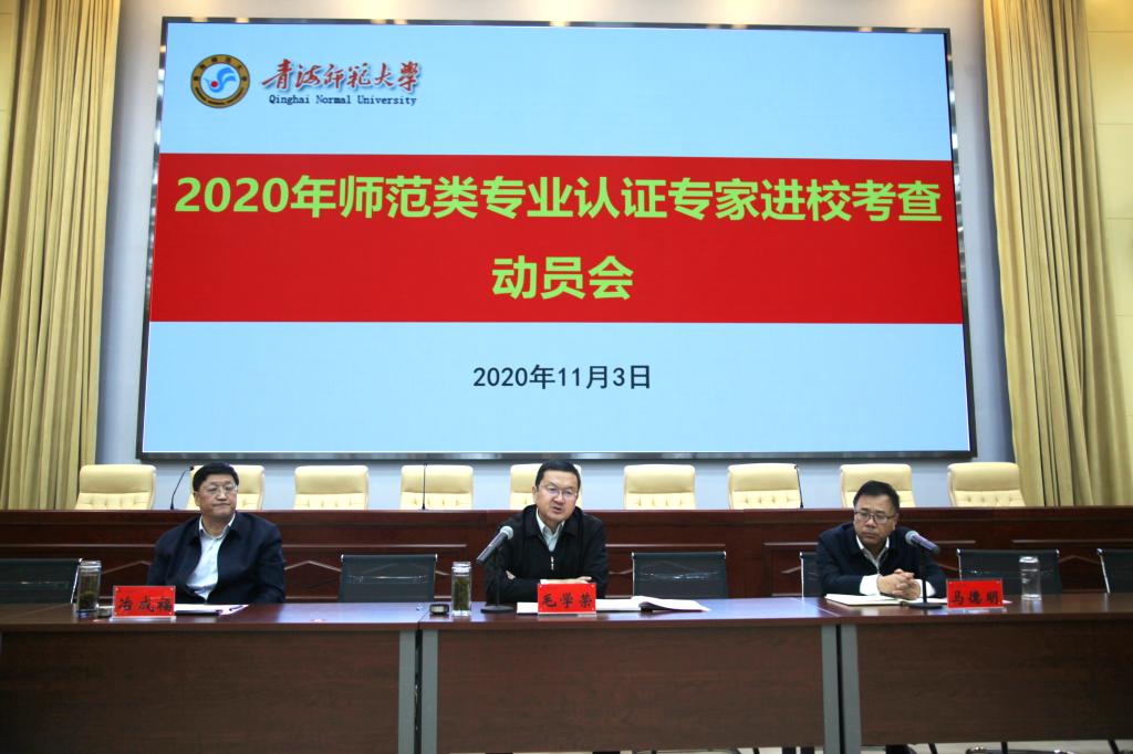 毛学荣指出,作为青海省唯一一所师范大学,我们承担着培养高质量基础教育师资的职责和使命。师范类专业认证工作事关师范生的培养质量,事关学校高质量内涵发展,我们要高度重视,切实抓紧抓实。相关学院前期组织进行了大量卓有成效的基础性工作,冲刺之际,我们要集全校之力做好迎接专家组进驻各项工作。一要提高认识,统一思想。师范专业是学校办学的“立命之本”,全校上下要统一思想,打好认证工作的攻坚战。二要严格对标,精准落实。要认真对照认证标准,研究教育部相关文件、做好各类资料的搜集提交工作,周密安排认真制定工作方案,将每一项工作任务高标准落实到位。三要统筹协调,密切配合。专业认证工作是学校的一项系统工程,各部门要牢固树立全校一盘棋的观念,齐心合力、分工合作,以良好的精神状态和充分周到的准备迎接专家组的到来。同时专业认证也是对学校本科教学工作的又一次全面总结、全面审视、全面诊断,也是学校深化教育教学改革、提升整体办学水平的一次良好契机。