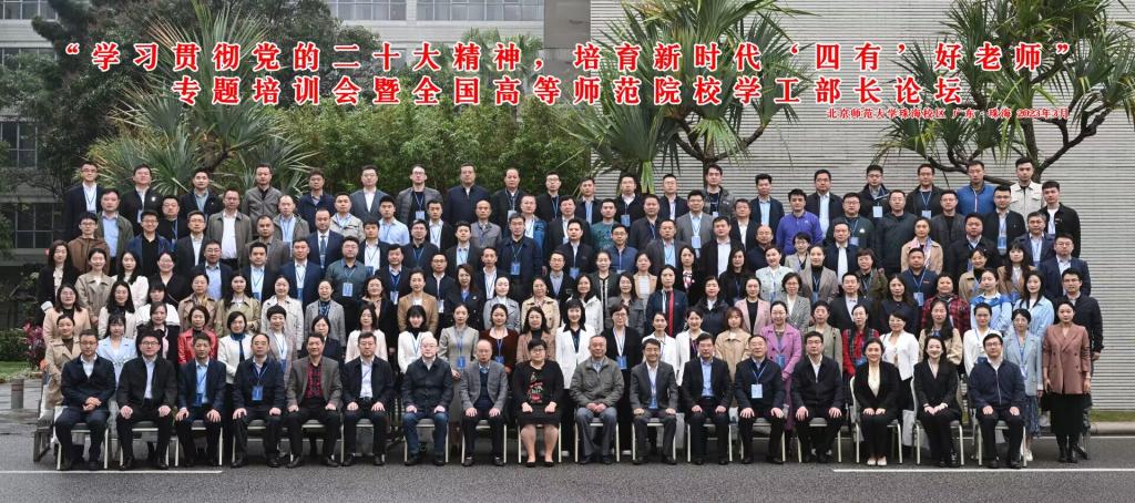 3月31日,由北京范大学党委学生工作部承办的“学习贯彻党的二十大精神,培育新时代‘四有’好老师”专题培训会暨全国高等师范院校学工部长论坛在北京师范大学珠海校区举行。北京师范大学党委副书记、珠海校区党委书记韦蔚,安徽师范大学党委副书记周旭、湖北师范大学党委常委余涛、江苏师范大学党委副书记刘广登、上海师范大学党委副书记葛卫华、天津师范大学党委副书记马雷和永利官网党委副书记许存宁以及北京师范大学等45所高等师范院校学工部长、辅导员代表参会。北京师范大学珠海校区党委副书记于小雷主持会议。