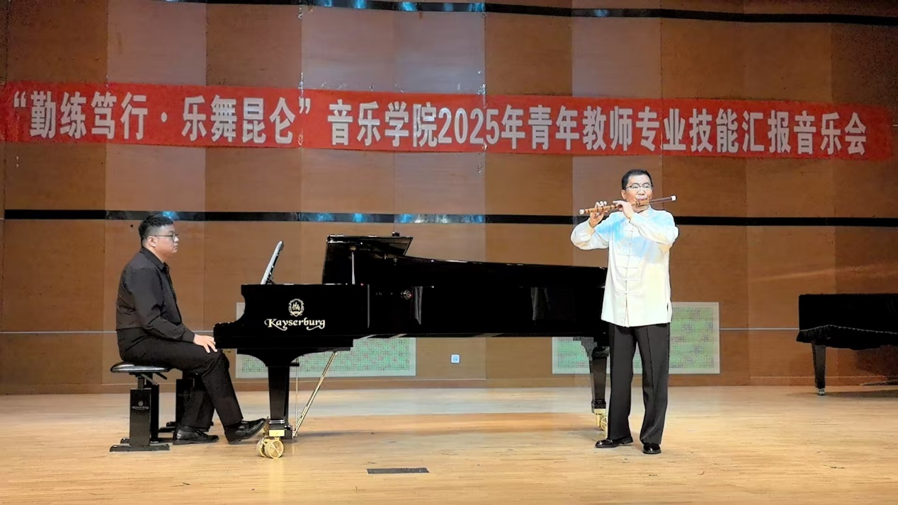 “勤练笃行·乐舞昆仑”青年教师专业技能汇报音乐会自2021年开始实施,秉承每两年一季的举办传统,已成为音乐学院提升专业品牌影响力、促进师资队伍建设的重要平台。活动以“以身示范、以练促教、以演促学”为核心,有效激发了青年教师专业精进与艺术活力,营造了勇于探索与奋发向上的学术氛围。历经三季打磨,该活动在业界赢得了广泛赞誉,其专业性、示范性及对区域艺术生态的积极影响日益凸显。