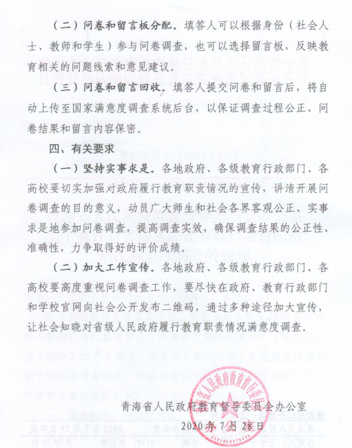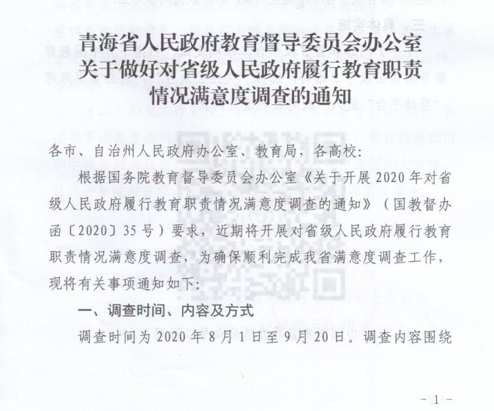 青海省人民政府教育督导委员会办公室关于做好对省级人民政府履行教育职责情况满意度调查的通知