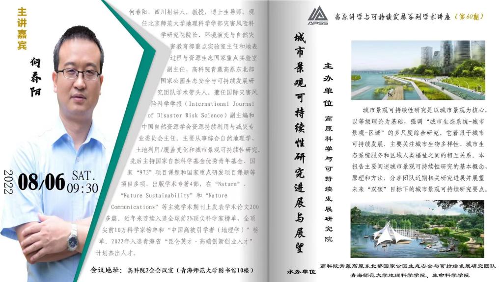 讲座人:何春阳 北京师范大学教授、高科院“青藏高原东北部国家公园生态安全与可持续发展研究”团队带头人、国家自然科学基金优秀青年基金获得者。