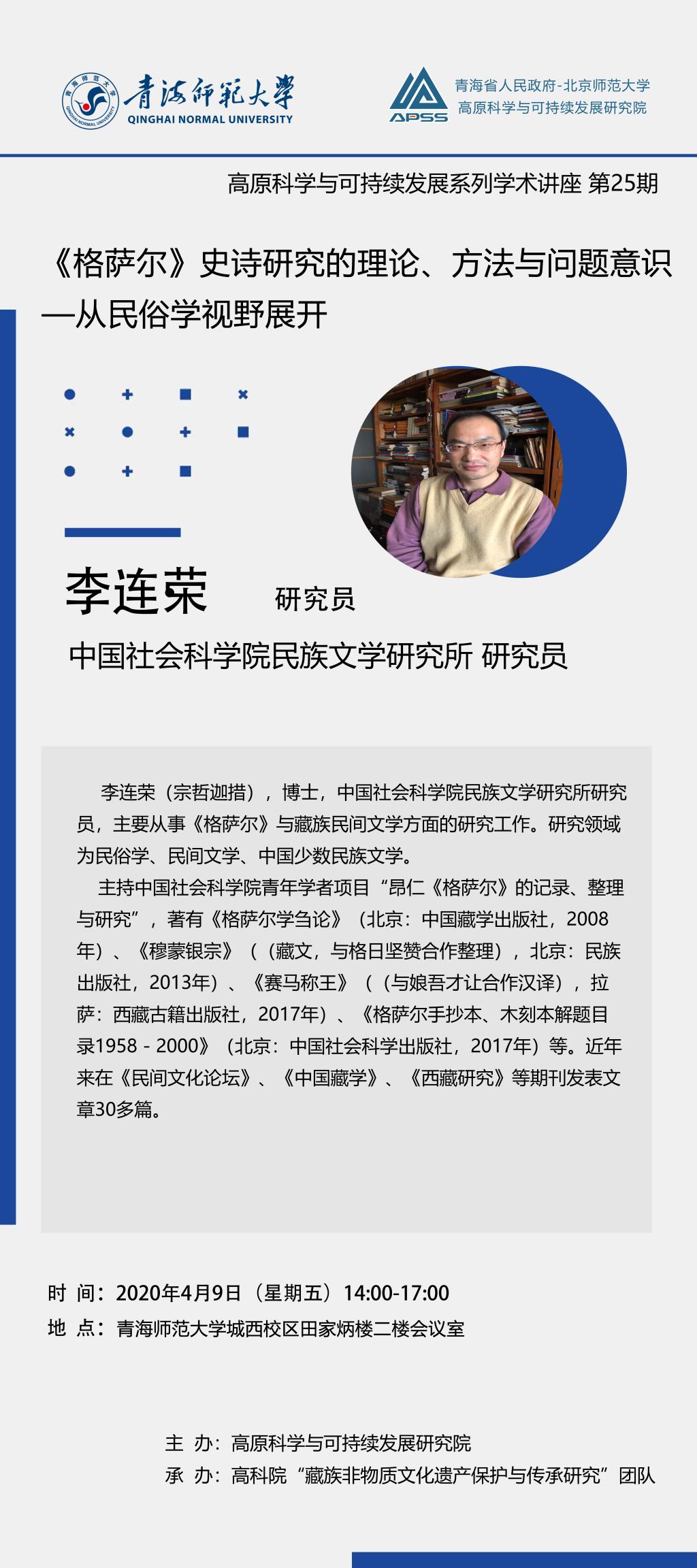 为促进永利官网学术交流合作,拓展师生的学术视野,定于4月9日举办高原科学与可持续发展系列学术讲座(第25期)两场。现将有关事项通知如下: