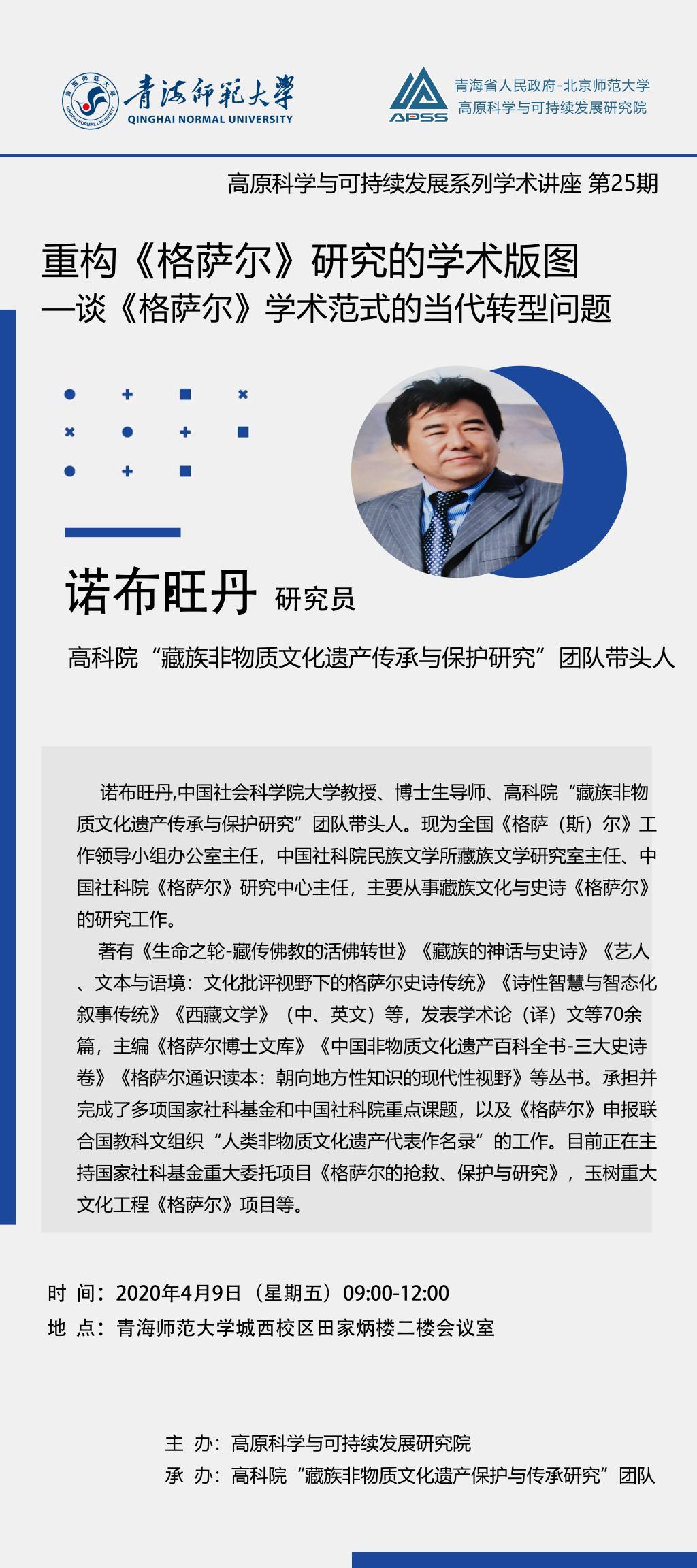 诺布旺丹,中国社会科学院大学教授、博士生导师、高科院“藏族非物质文化遗产传承与保护研究”团队带头人。现为全国《格萨(斯)尔》工作领导小组办公室主任,中国社科院民族文学所藏族文学研究室主任、中国社科院《格萨尔》研究中心主任,主要从事藏族文化与史诗《格萨尔》的研究工作。